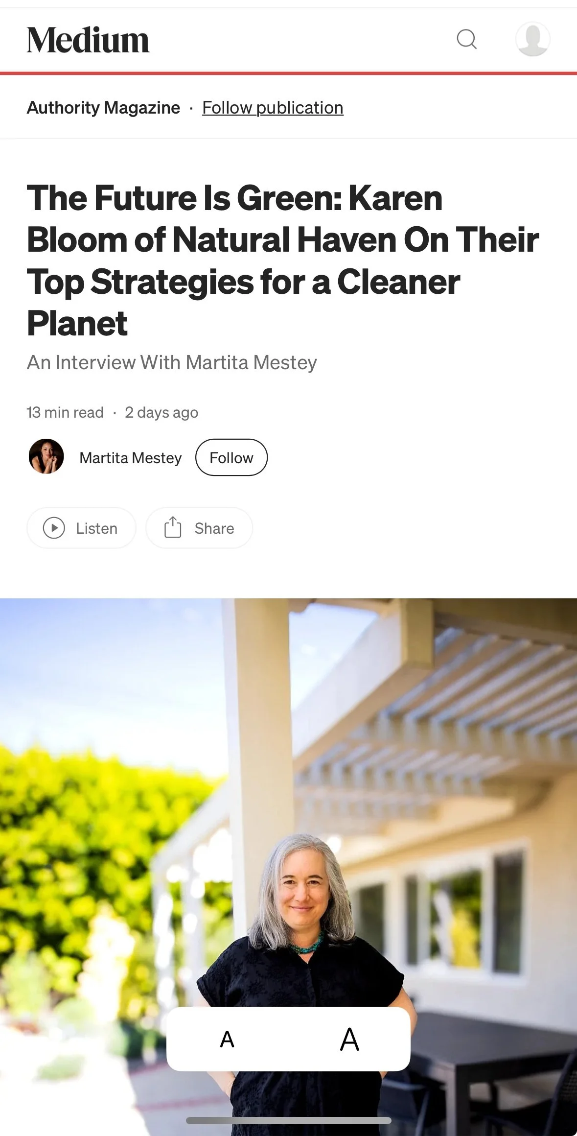 Medium's Authority MagazineThe Future Is Green: Karen Bloom with Natural Haven On Their Top Strategies for a Cleaner Planet (May 21, 2025)